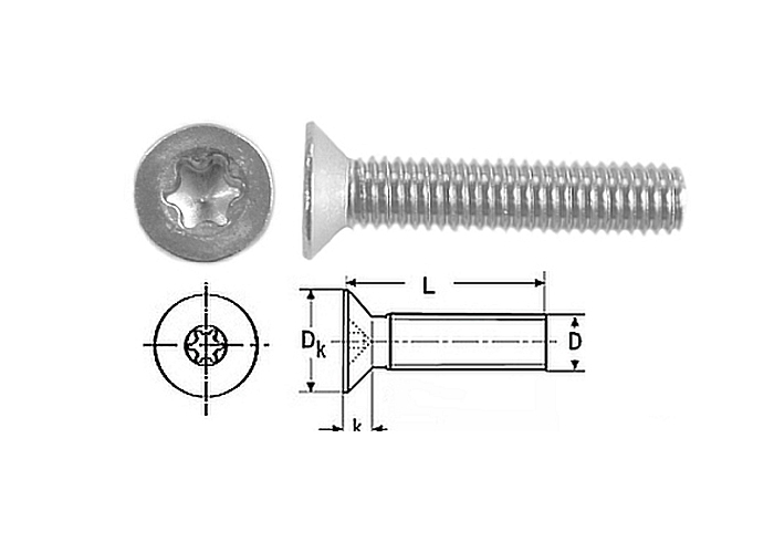 1000 Stk ISO 14581 M2x3 A2 TX6 Senkschrauben mit Innensechsrund, Edelstahl ( ~ DIN 965 )
